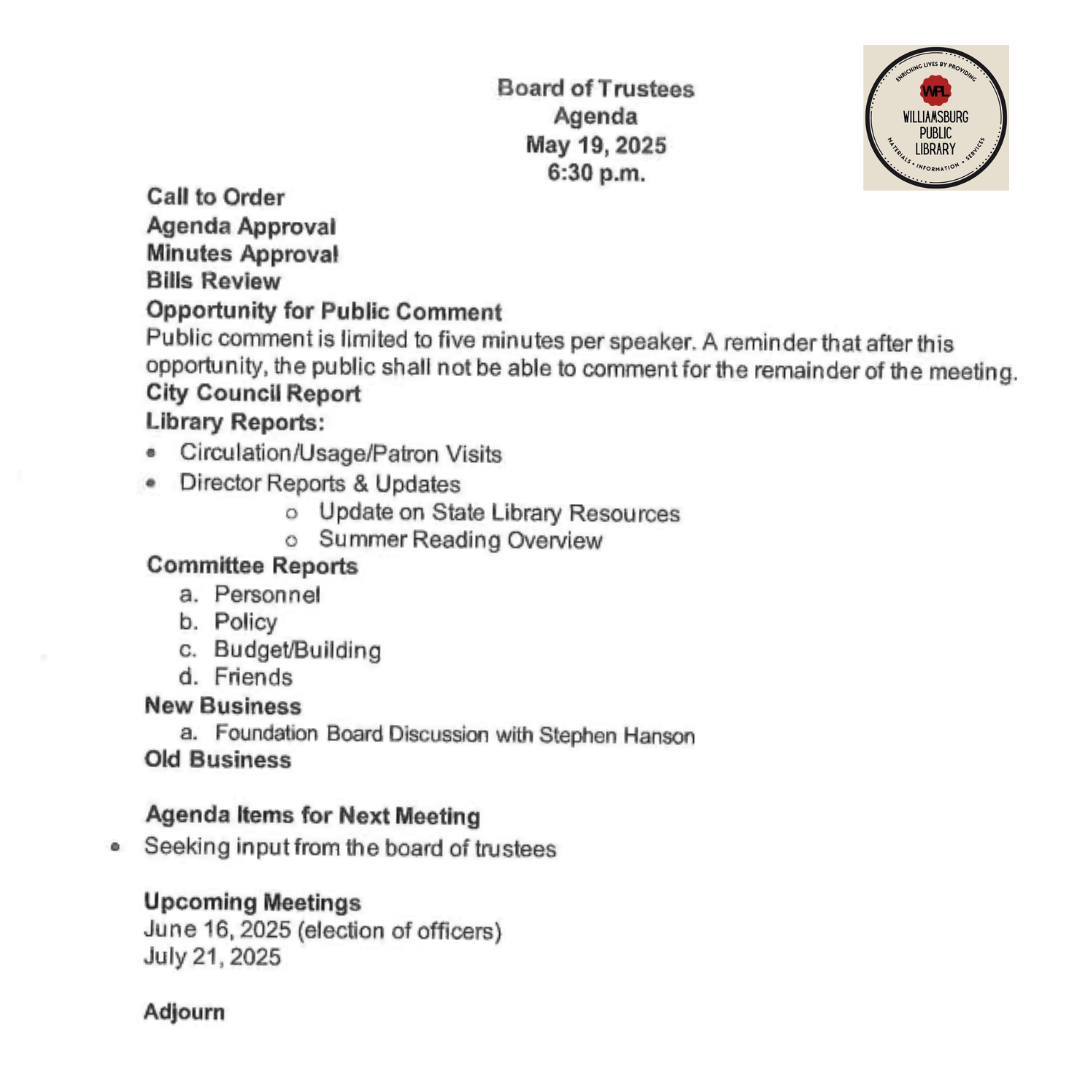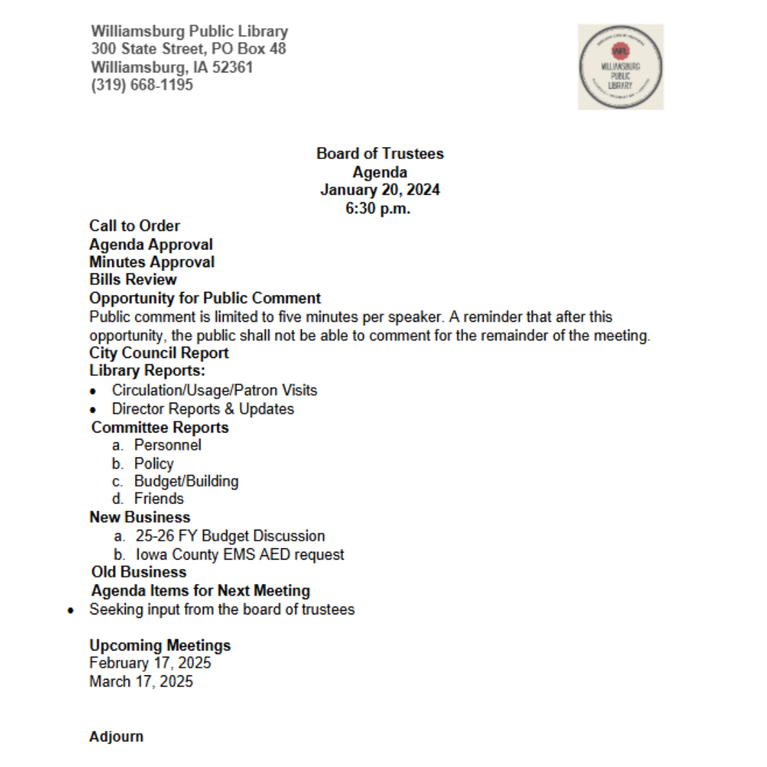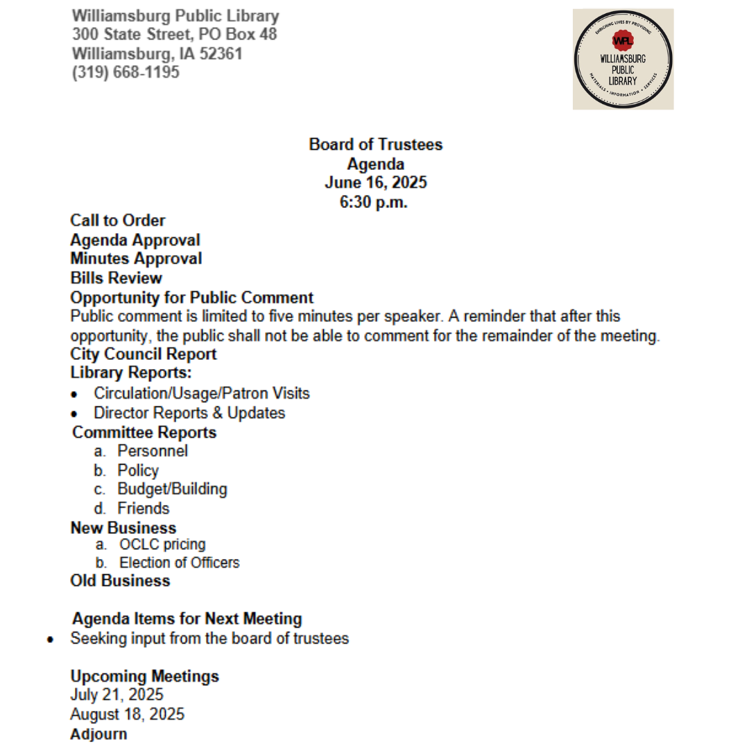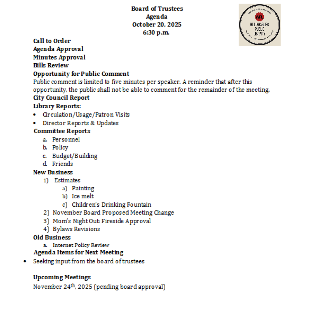 WPL Library 2025 Board Agendas